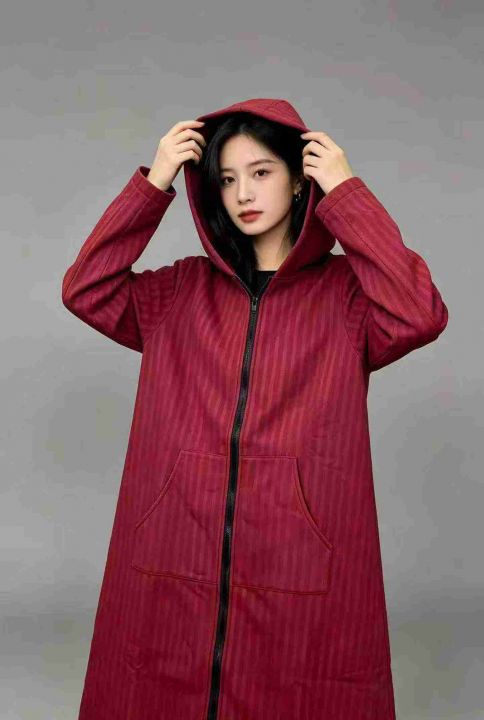 82件连帽拉链长款外套。单款单色,内里加绒,面料品质...