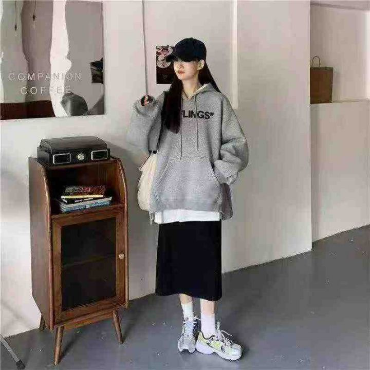 [月亮]:美式潮牌字母刺绣情侣棉质连帽卫衣
