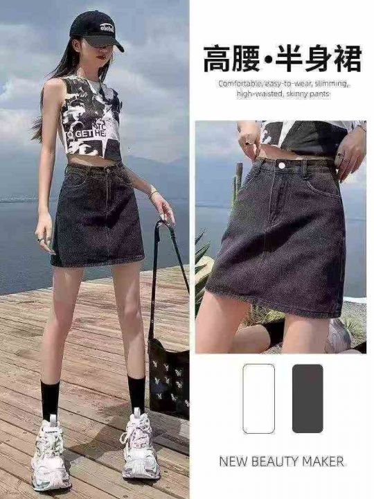 ☕️灰色牛仔短裙女半身裙夏季高腰显瘦a字包臀裤裙296条全清8.8元,码数S到...