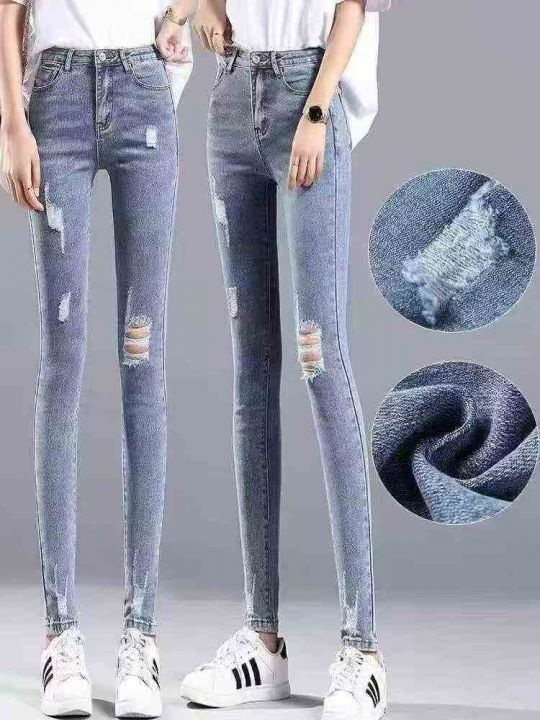 ☕️弹力破洞牛仔裤女新款高腰显瘦弹力紧身乞丐小脚铅笔裤588条全清9.8元,...