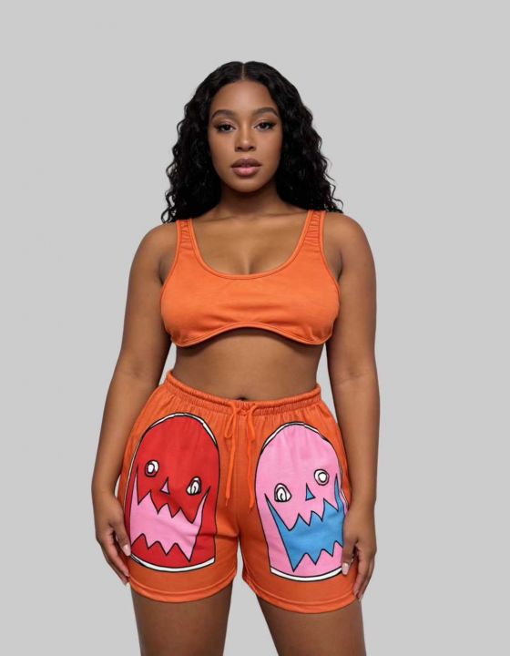 5.5清:欧美跨境性感背心短裤印花两件套,整款五色,...