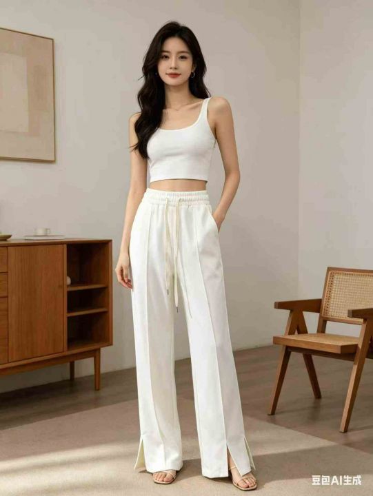 开叉阔腿裤女裤子春秋款2026新款窄版直筒休闲小个子运...