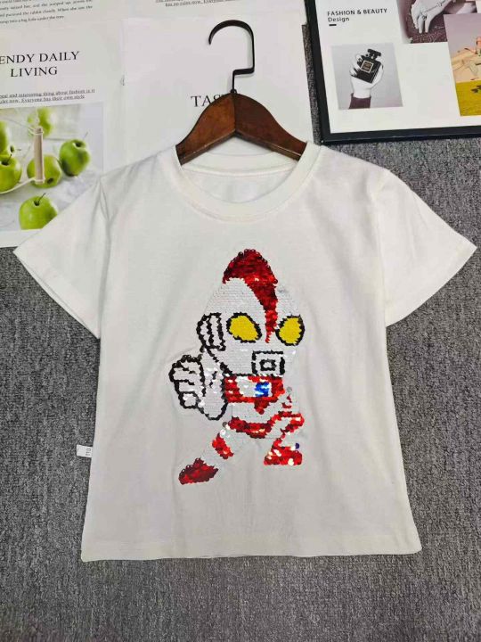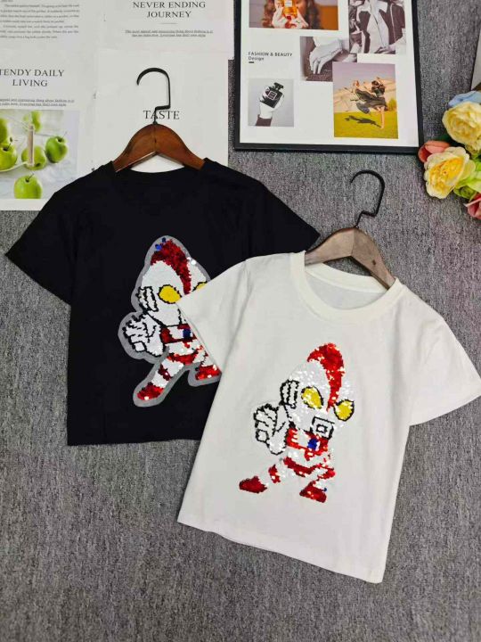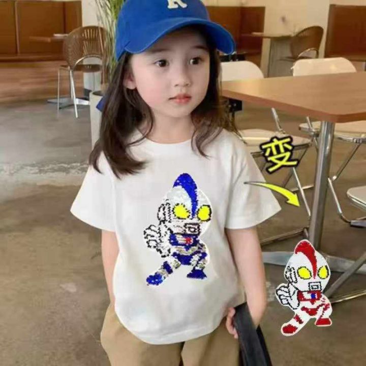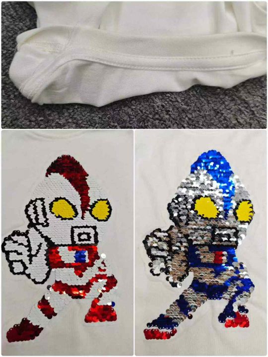 3.5清天猫仓回收4000件纯棉儿童奥特曼亮片变色工艺短...