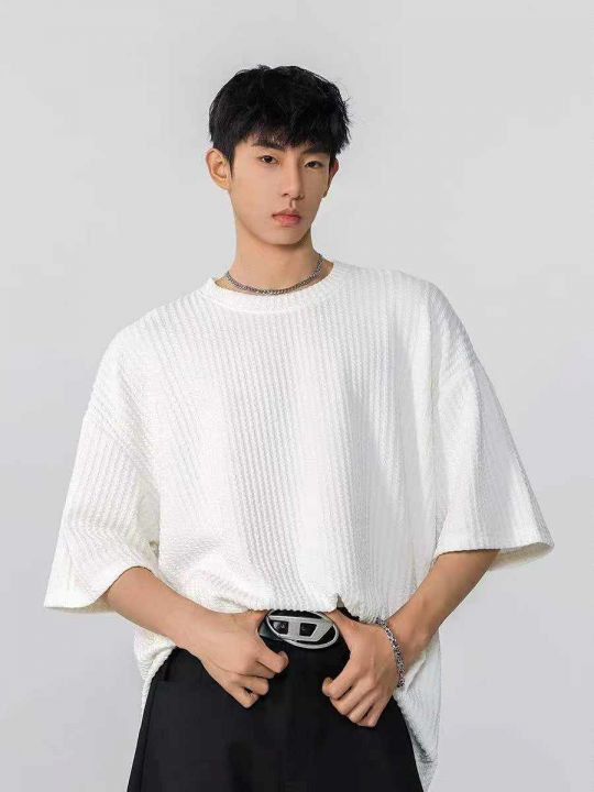 电商仓回收285件华夫格帅气潮男夏季痞帅T恤上衣,码数S-2XL,宽松大版型,质量宽松都非常好,独立包装,分货➕1