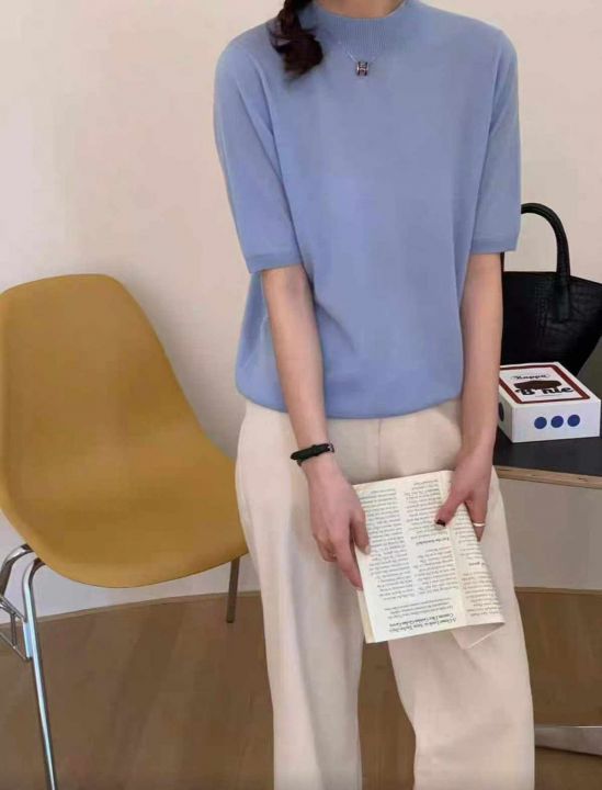 电商仓回收842件韩系知性温柔风针织短袖上衣,码数S-3XL。手感软糯,面料柔软舒适。独立包装,分货➕0.5