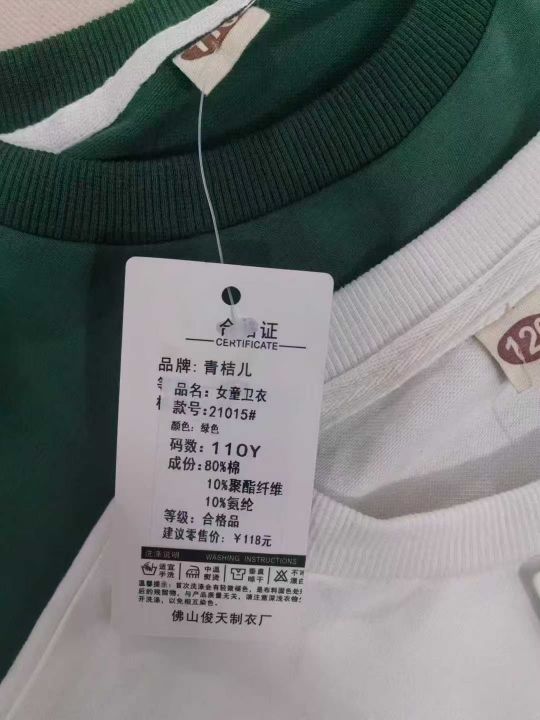 270件左右中大女童卫衣,整款2个色,码数110-150,后领包边,独立包装带吊牌