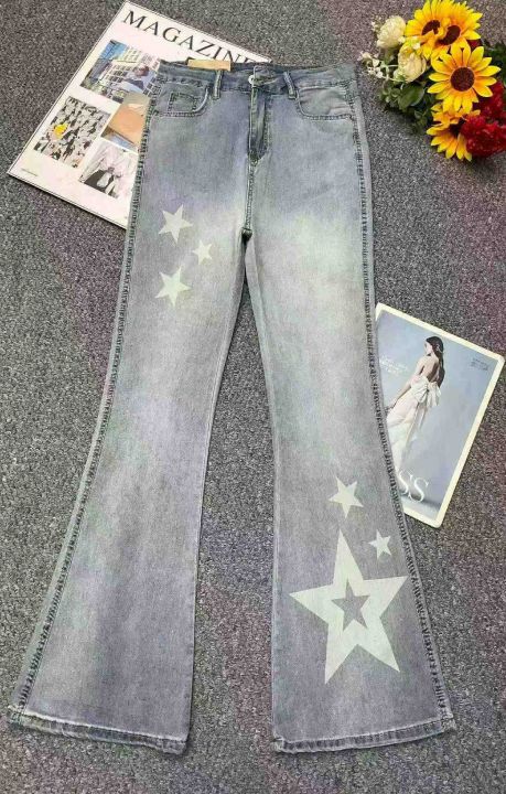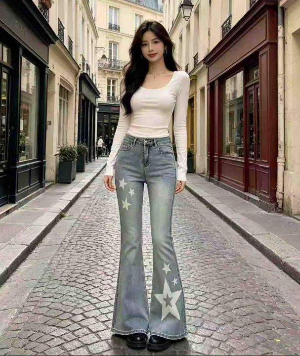 捡漏款,春季新款高弹力千禧辣妹微喇显瘦设计感小众牛...