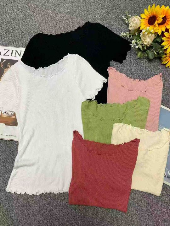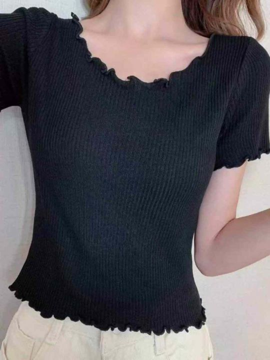夏季新款净版简约百搭宽松法式木耳边冰丝洋气针织衫,...