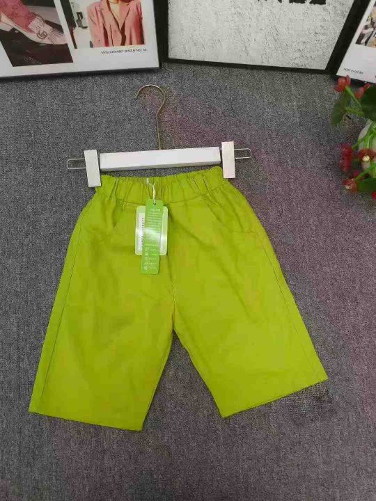 高品质纯棉儿童纯色舒适休闲短裤,数量2000件左右,尺码110--160,整款三个色,后置口袋,独立包装带吊牌,大货干净整洁