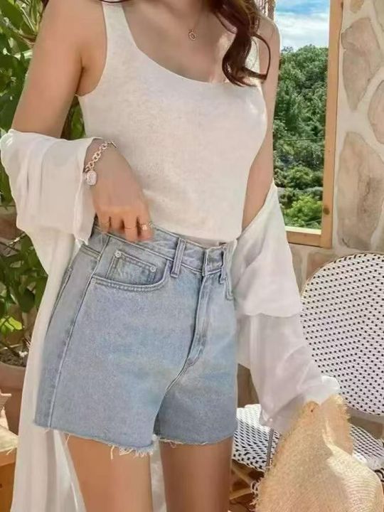 牛仔短裤女夏季高腰显瘦阔腿宽松a字浅蓝色热裤106条全...