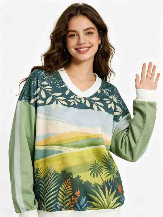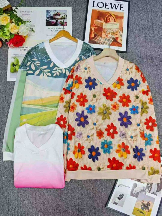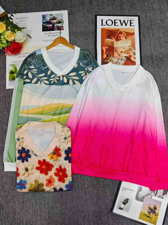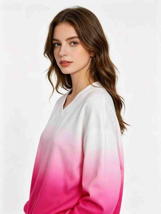 164件V领外贸印花渐变女士时尚薄绒卫衣,码数S-2XL。内里抓薄绒,版型宽松。独立包装,分货➕0.5