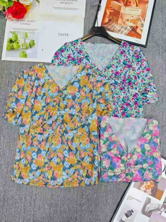 电商仓回收276件仙女碎花韩版V领褶皱泡泡袖时尚上衣,码数L-XL。手感舒适,质量很好。独立包装,分货➕1