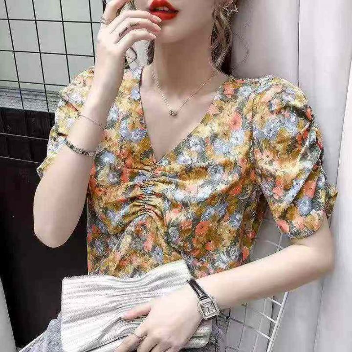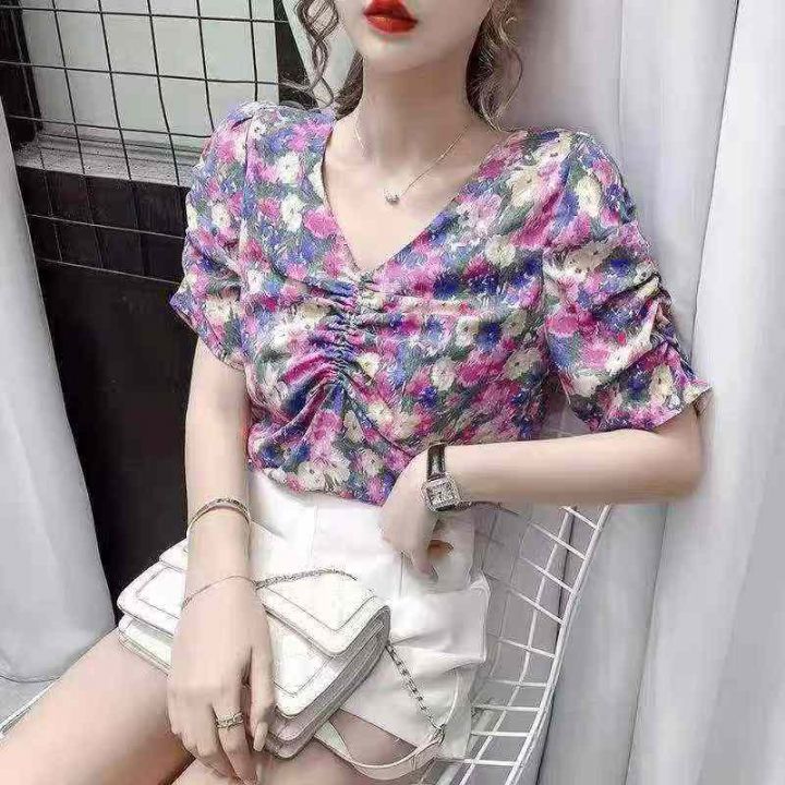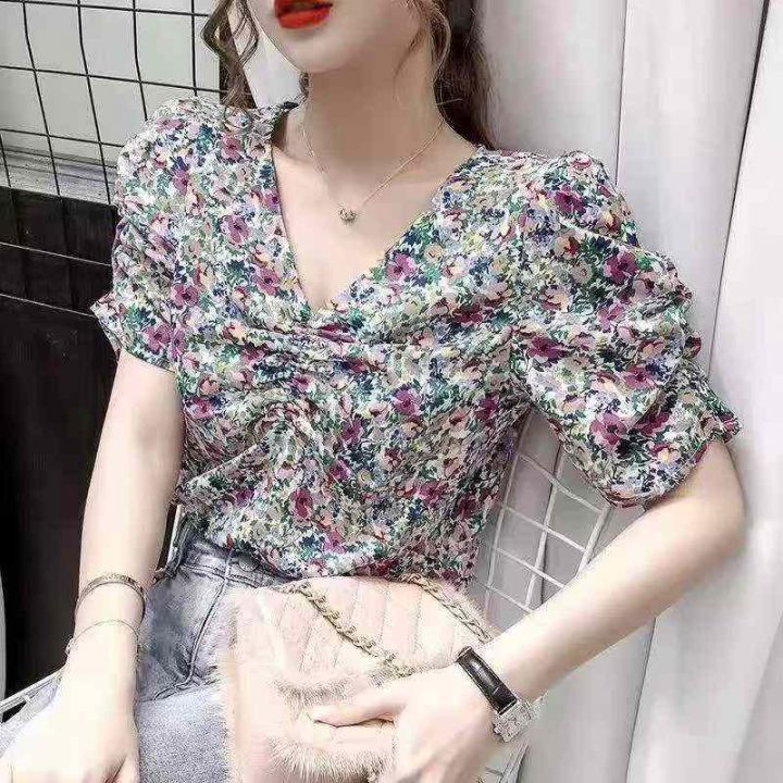 4.9清电商仓回收276件仙女碎花韩版V领褶皱泡泡袖时尚...