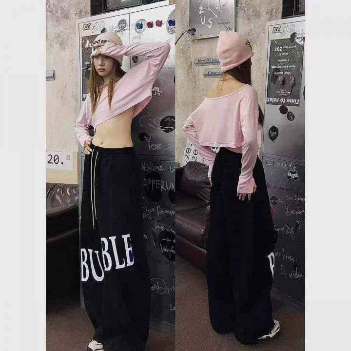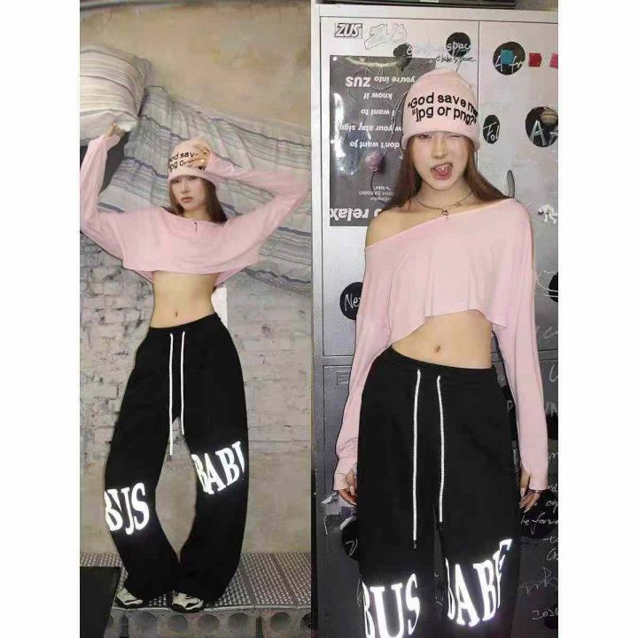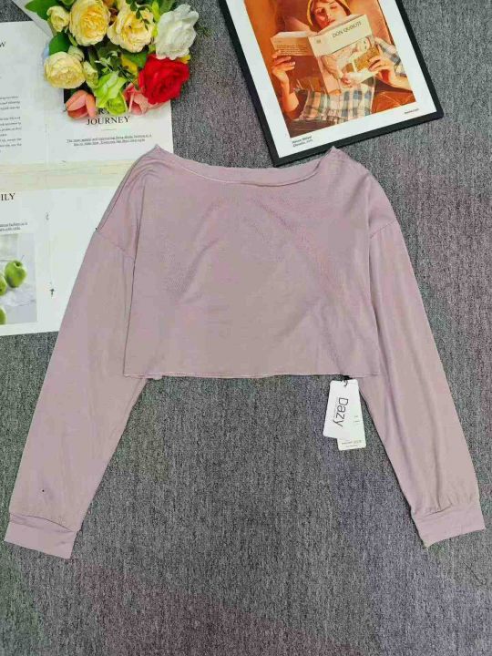 电商仓回收77件灰粉色宽松潮牌小众露肩辣妹露脐女长袖T恤,码数S-XL。面料柔软,设计感十足,模特图仅供参考。独立包装,捡漏清