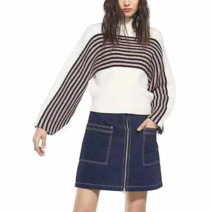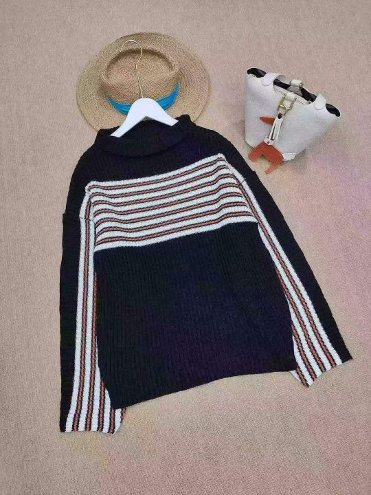 [月亮]:复古条纹撞色简约时尚针织毛衣上衣
