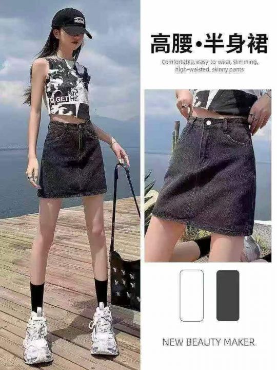 ☕️灰色牛仔短裙女半身裙夏季高腰显瘦a字包臀裤裙296...