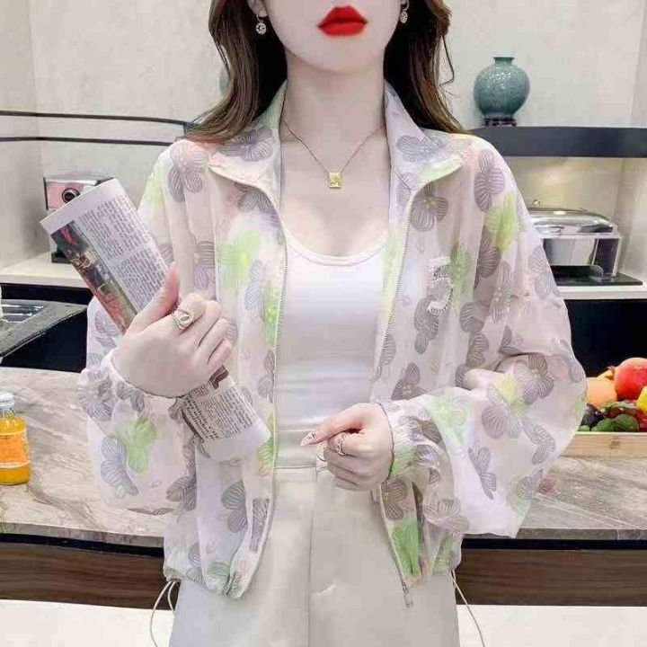 韩版休闲碎花轻薄透气重工串珠女士防晒衣.单款两个色100件s-xL独立包装全清7.5