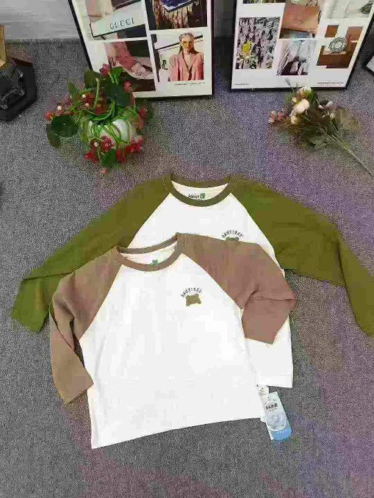 Ⓜ️全清7.8 童装春秋装插肩袖撞色上衣洋气长袖,数量100件,尺码110--160,胸前可爱小熊logo,面料柔软亲肤,后领包边,独立包装带吊牌