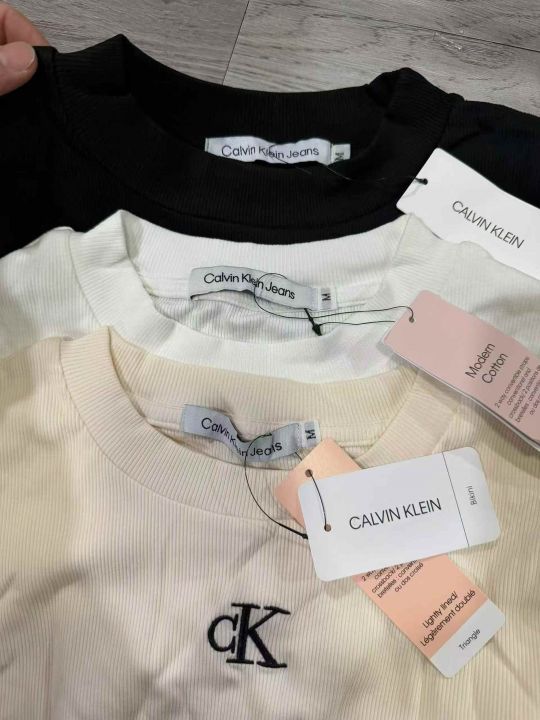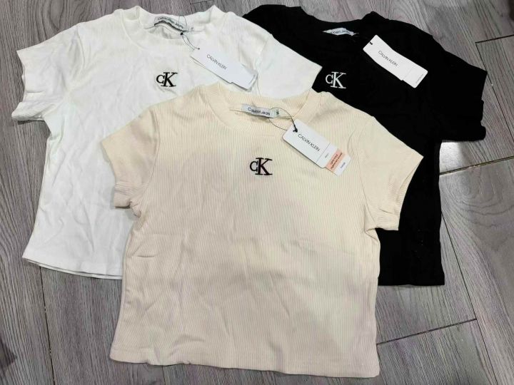 1200件CK Jeans夏季女士活力少女感休闲刺绣时尚辣妹正肩罗纹短袖T恤