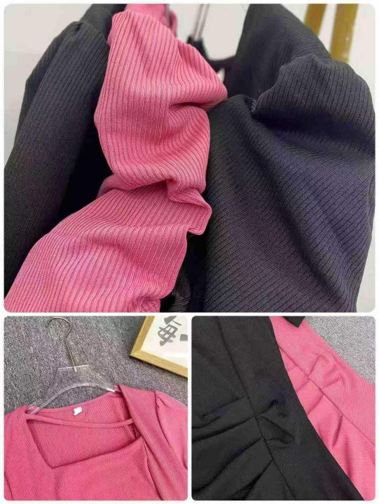 纯欲设计感方领斜条连衣裙375件8.5,面料舒适有弹力,...