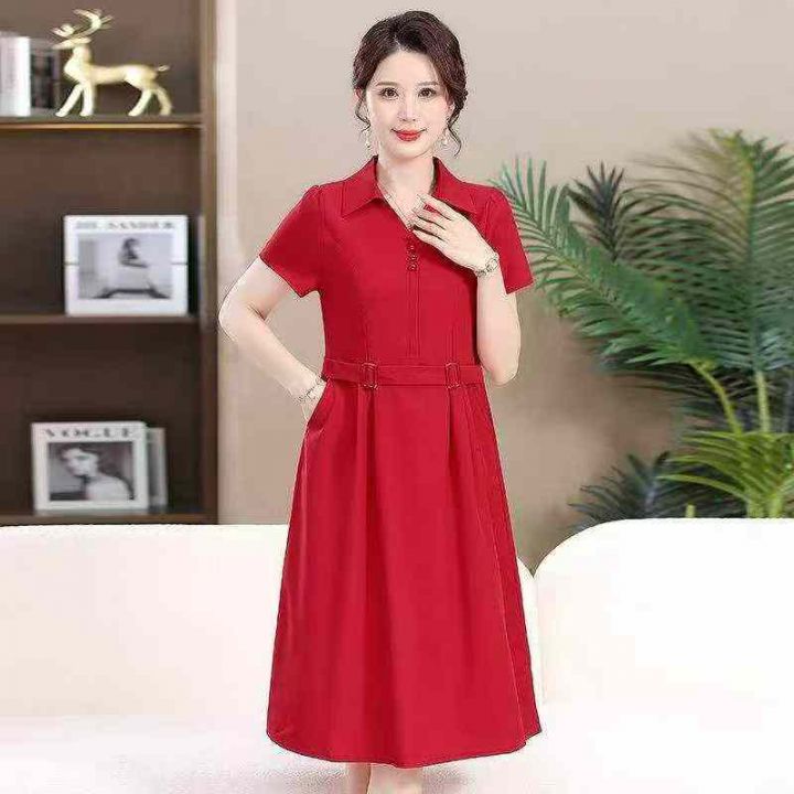 夏季新款网红复古时尚妈妈装减龄显瘦短袖系带连衣裙,独立包装,工厂新货码...