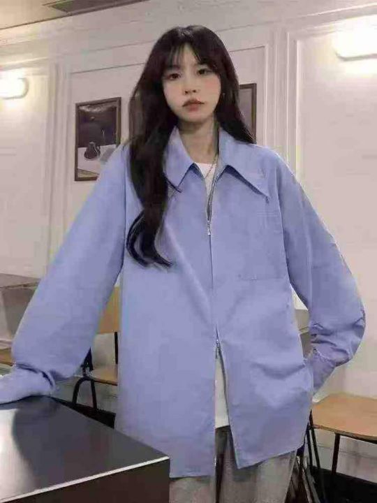 大码法式设计感双拉链POLO领长短袖衬衫女春夏薄款衬衣上衣外套 独立包装 码数1-4码(短袖200件左右长袖130件左右)全清5.5 分货加0.5