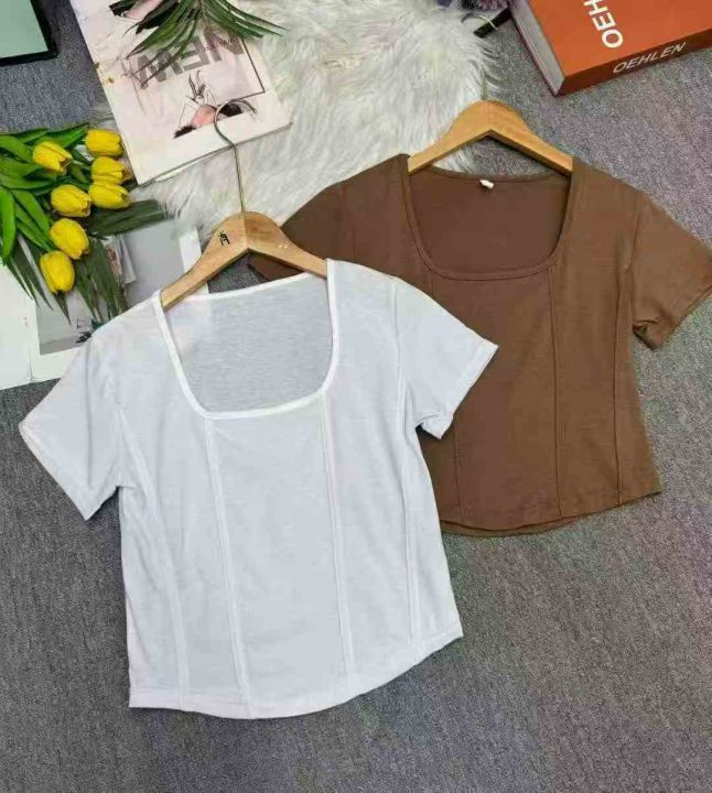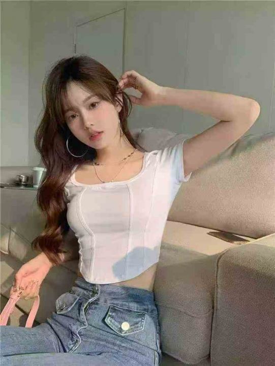 短袖方领T恤露脐修身显瘦设计感短款辣妹上衣,独立包装,码数1-4,大货白色为主,数量247件,货号116#20
