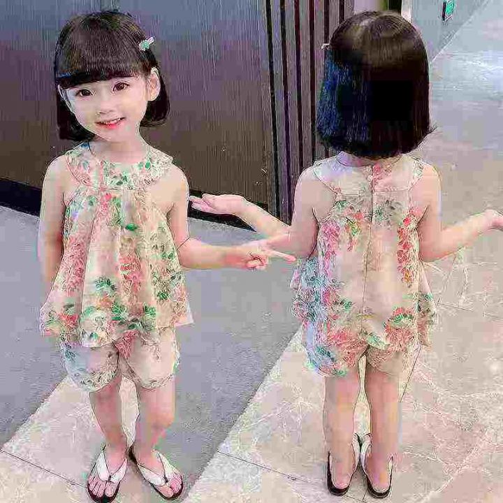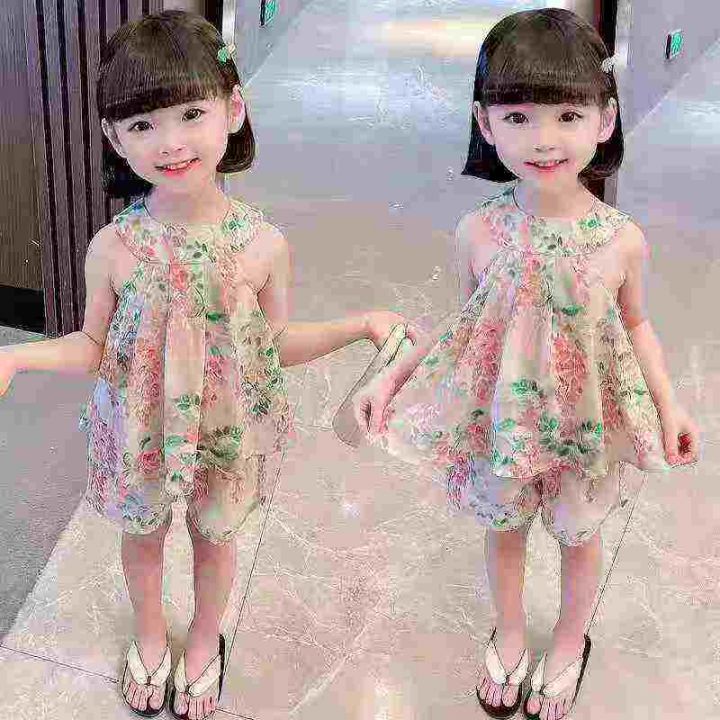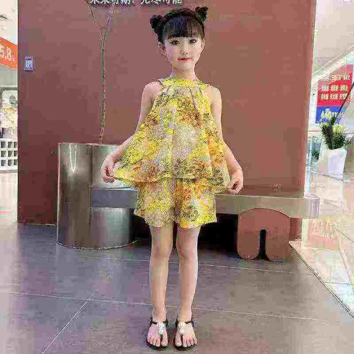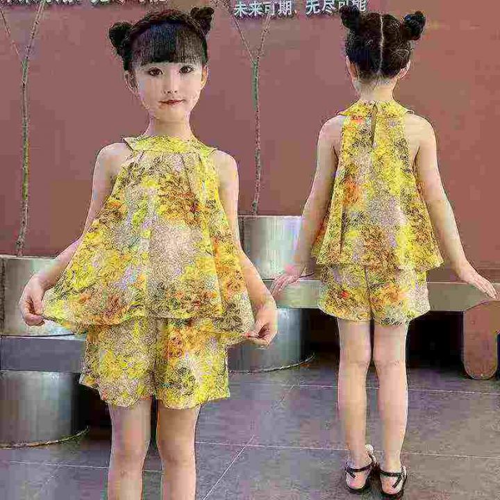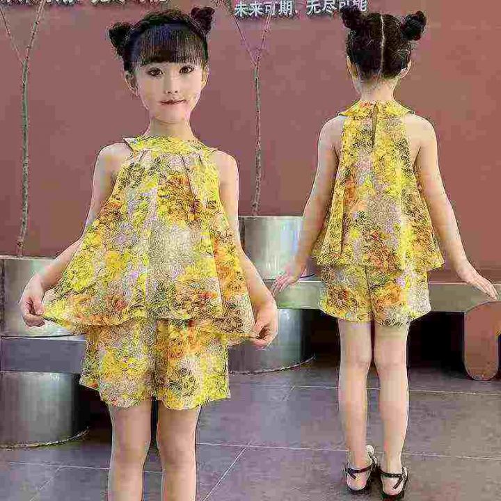 3000套,女童夏装套装,新款中大童网红洋气女孩黄色无袖夏季短裤两件套,两个色独立包装\'码数1.2.3.4.5,大概3-10岁左右穿,分货➕1,货号001#30