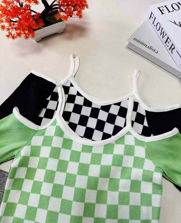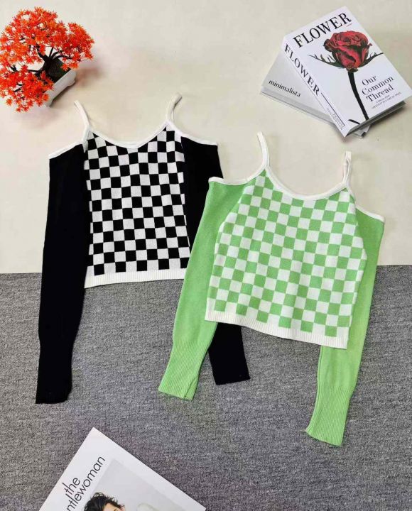 800件 春秋时尚格子露肩提花性感长袖上衣打底衫女,整款两色,高弹力,独立包装 4.8 清