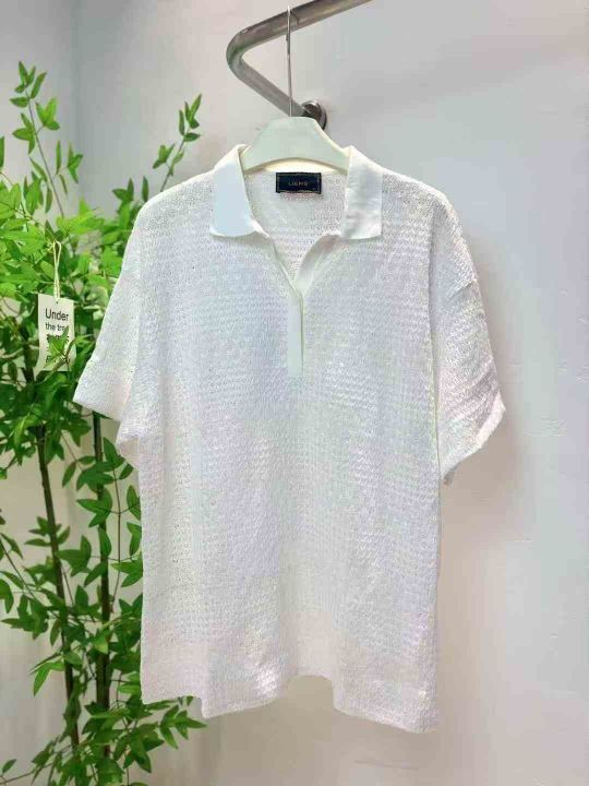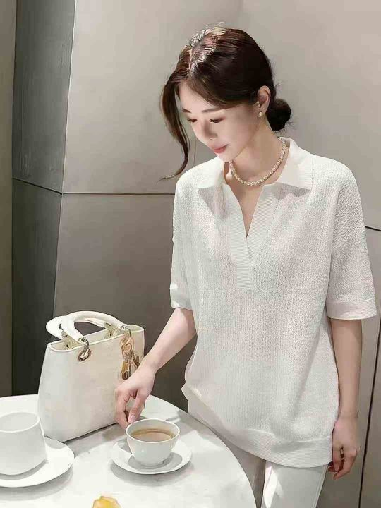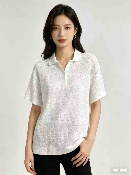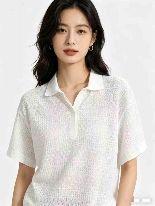 150件左右法式温柔简约镂空气质肌理感透气翻领针织衫...