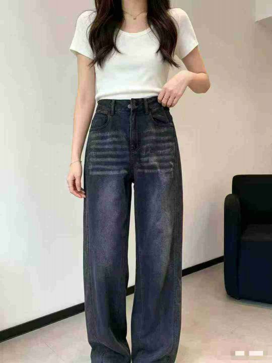 1000条美式复古高街风做旧直筒黑灰阔腿牛仔裤,质量好...