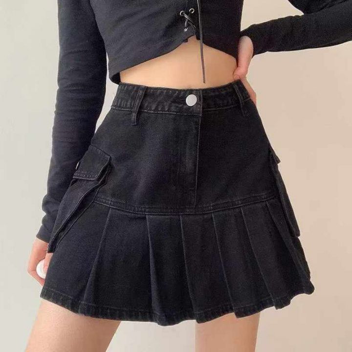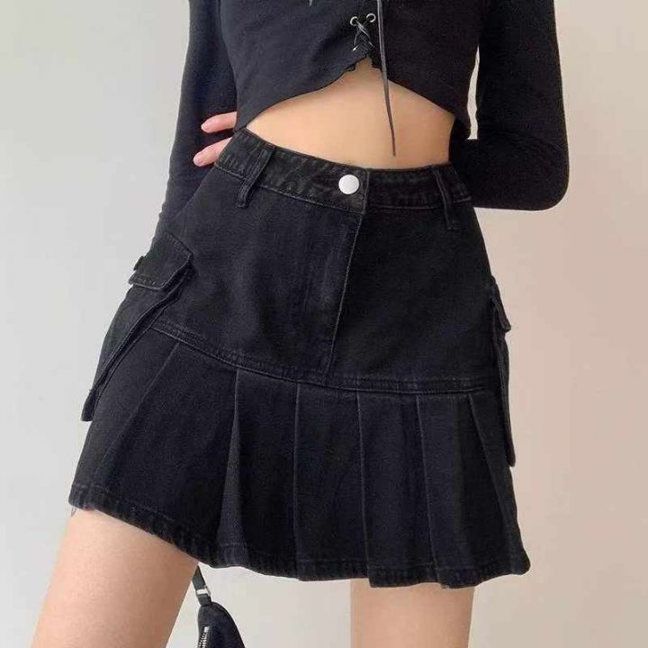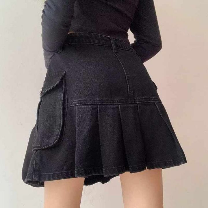 夏季新款网红复古弹力洗水棉多袋工装牛仔短裙,独立包...