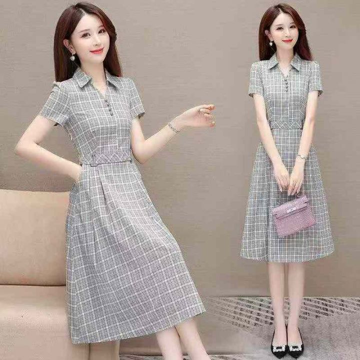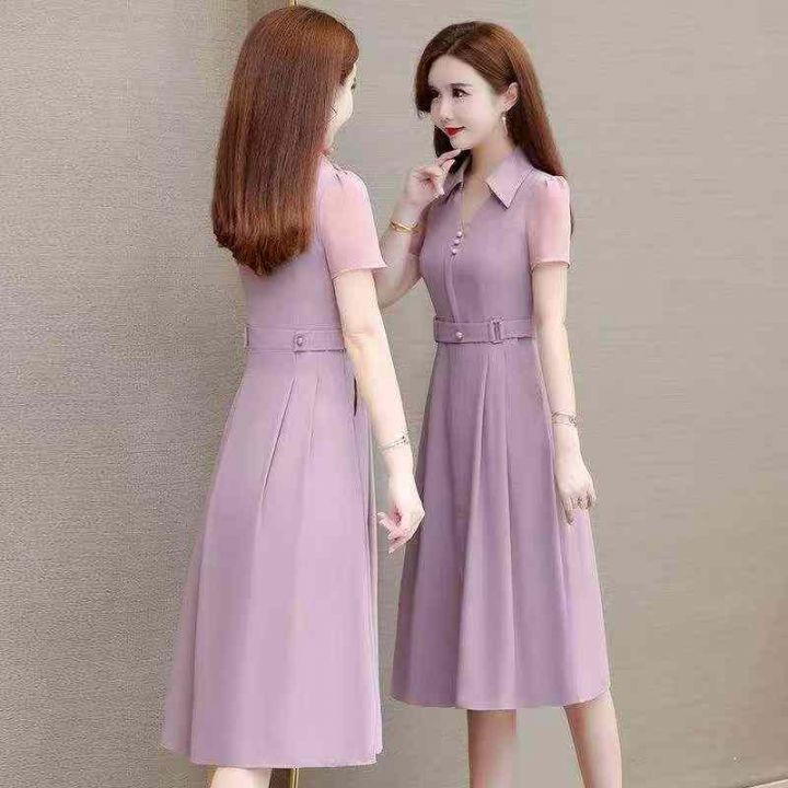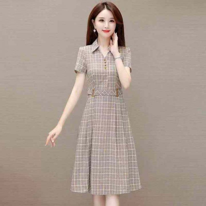 夏季新款网红复古时尚妈妈装减龄显瘦短袖系带连衣裙,...