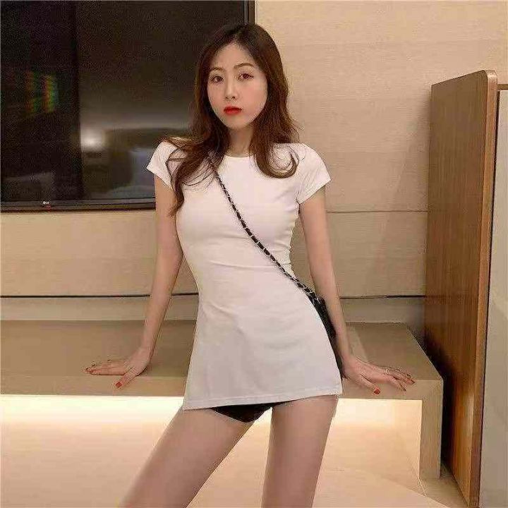 夏季韩版新款弹力修身性感开叉中长款圆领短袖纯色T桖,独立包装白色为主,码数S-2XL码,470件,全清5.8元超低价秒杀!分货加一!