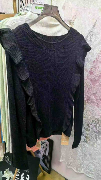 春季新款复古法式宽松百搭显瘦木耳边设计款圆领套头毛衣,独立包装带吊牌,码数S--XL码,面料软糯厚实弹力大,164件,全清6.9元超低价秒杀!