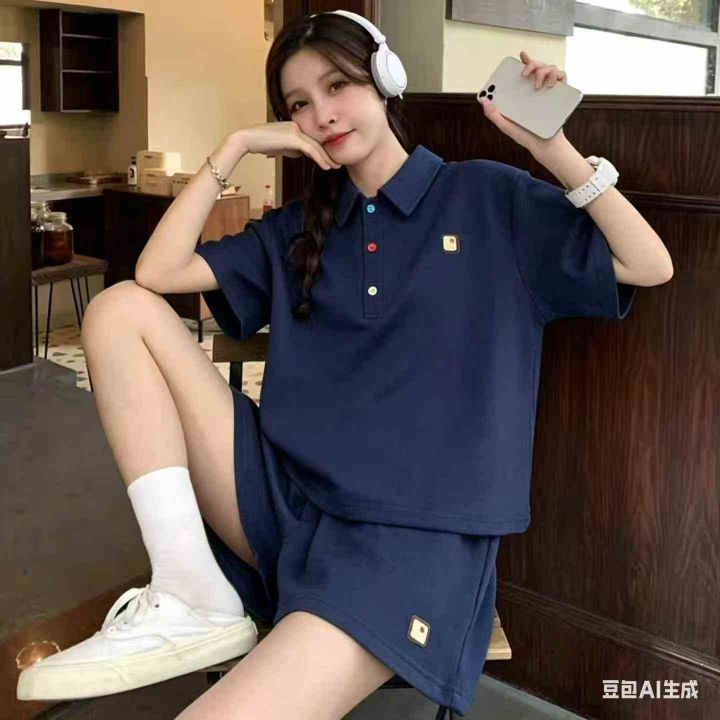 全清价9.5高级感短袖短裤两件套女士夏季大码欧货时尚...
