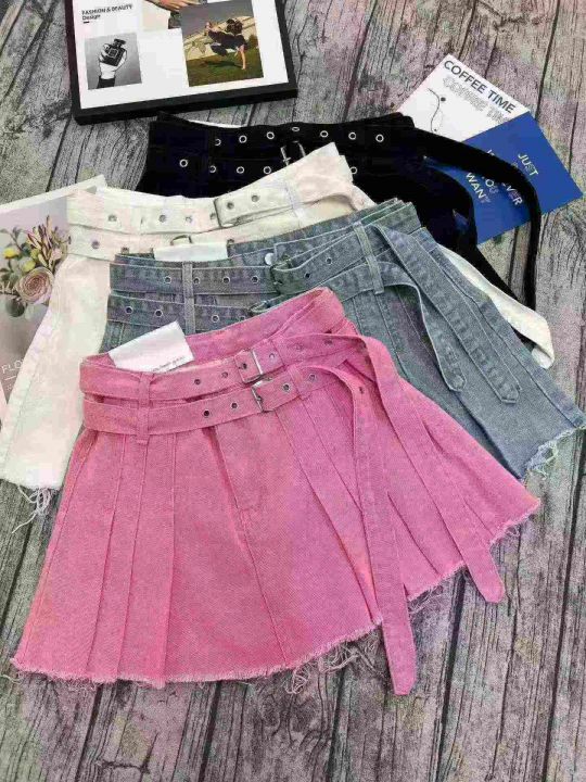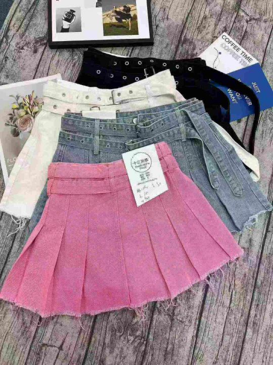 南城精品好货牛仔短裙475条全清10.8元,单款四个色,图8有颜色比例可以看,码数S到XL,⚠️每一条都有内衬,⚠️每一条都有配皮带,独立包装,少女感a字百褶裙女夏高腰显瘦牛仔短裙百搭防走光半身裙