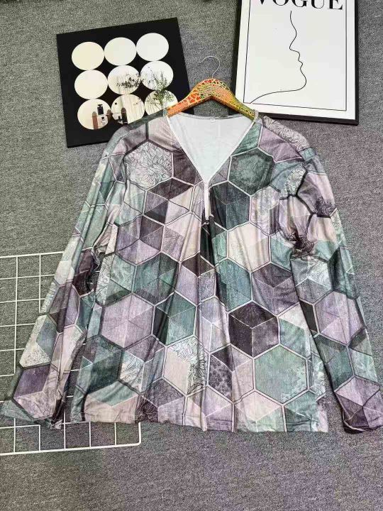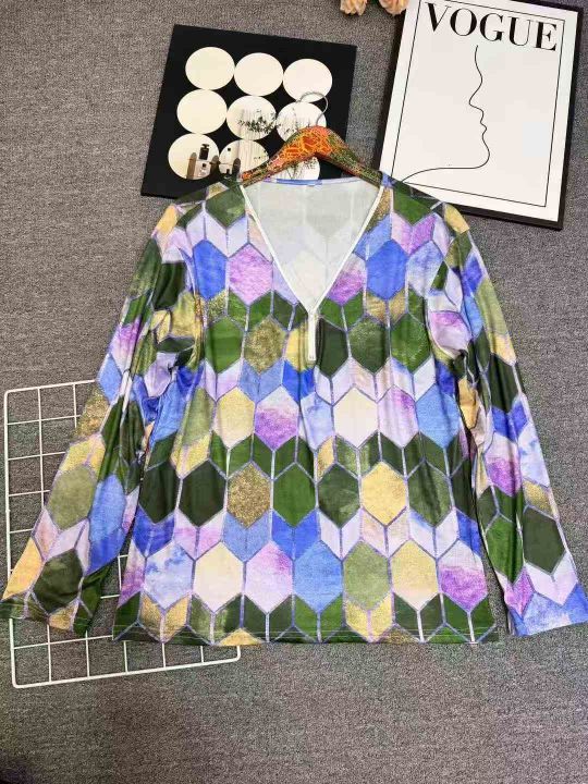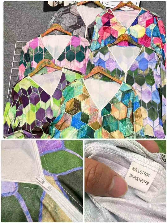 1200件\'欧美女装亚马逊爆款街头潮人几何魔方印花V领拉链衫长袖T恤女\'独立包装\'码数S-5XL,分货➕1,货号001#30