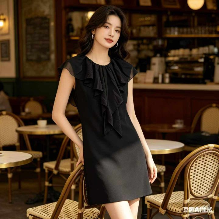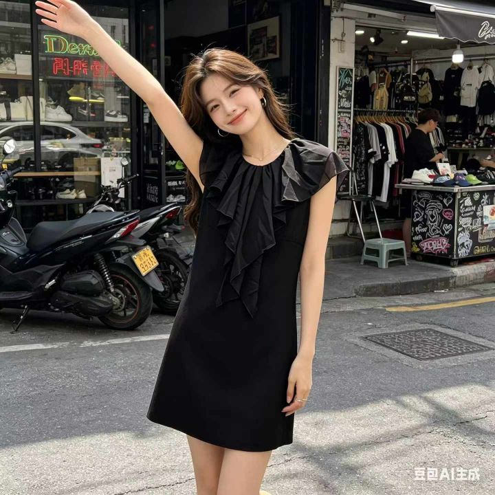 气质小清新花边荷叶连衣裙,数量197件,码数S-2XL,黑白两色,独立包装