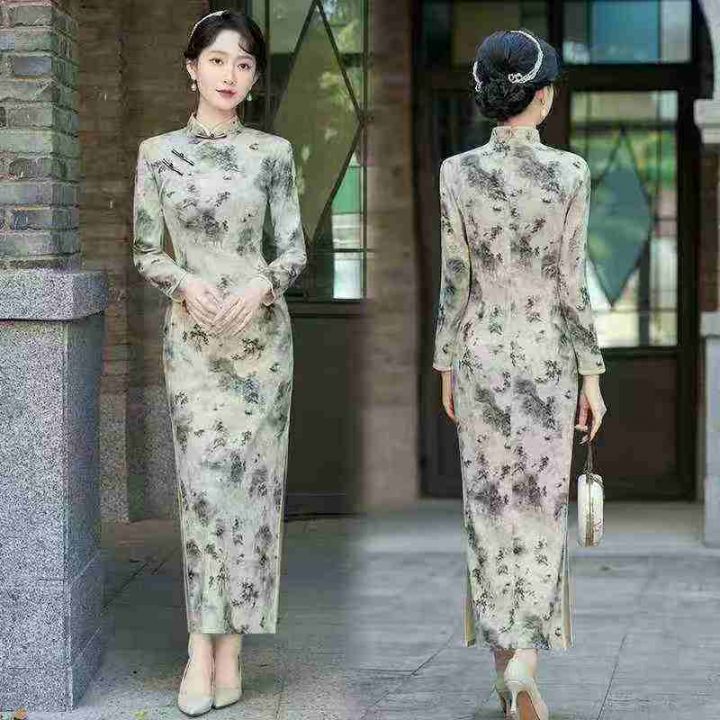 9.9清726件新中式旗袍 国风印花修身 春夏复古国风立领...