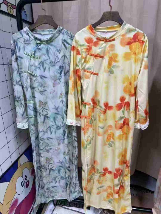 9.9清726件新中式旗袍 国风印花修身 春夏复古国风立领宽松款旗袍连衣裙 面料柔软有弹力 2个款多色 码数S-2XL 独立包装 全清元9.9元/件
