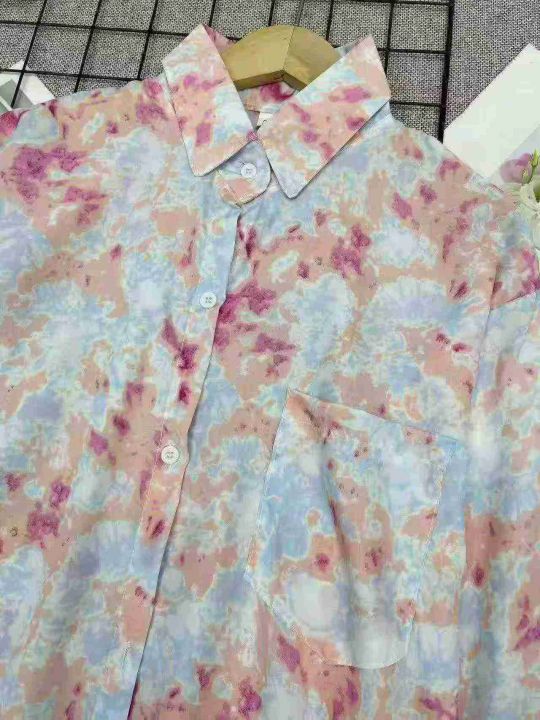 扎染小众港味薄款长袖宽松衬衫,数量:1554件,码数: 1-5相当于S-M-L-XL-2...