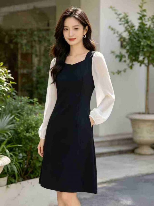 法式赫本雪纺拼接气质显瘦女士连衣裙.单款单色100件S...