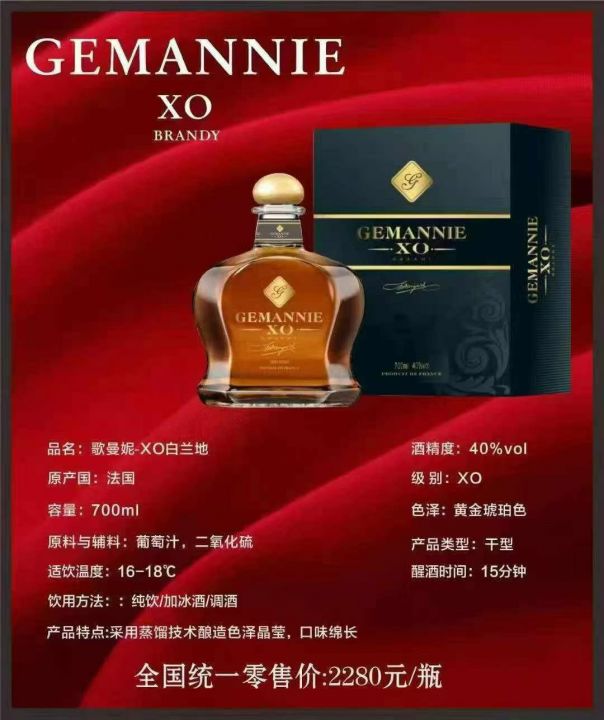 100多元一箱法国进口歌曼妮XO白兰地,700毫升×6瓶,40度,有个几百箱