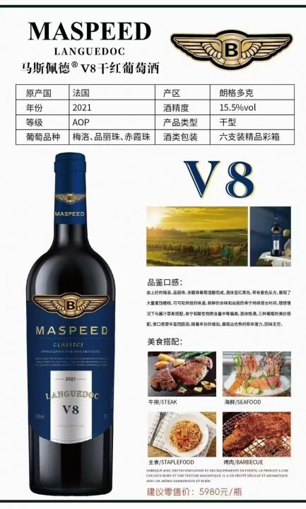 不到200元有一箱郎格多克产区,法国进口马斯佩德v8干红酒750箱,等级AOP,一箱24斤,超重重瓶,15.5度,21年,20箱起发
