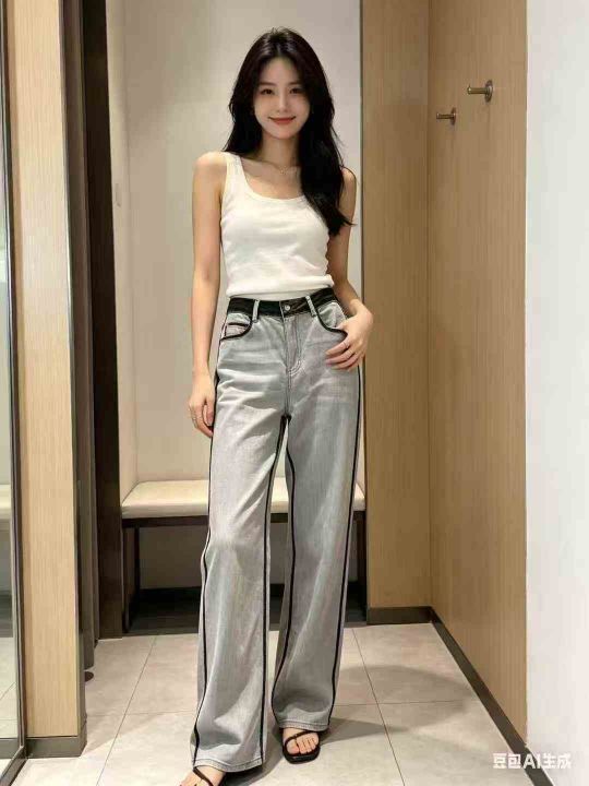 580件韩系松弛感复古做旧小辣妹高腰直筒烟灰色阔腿休...