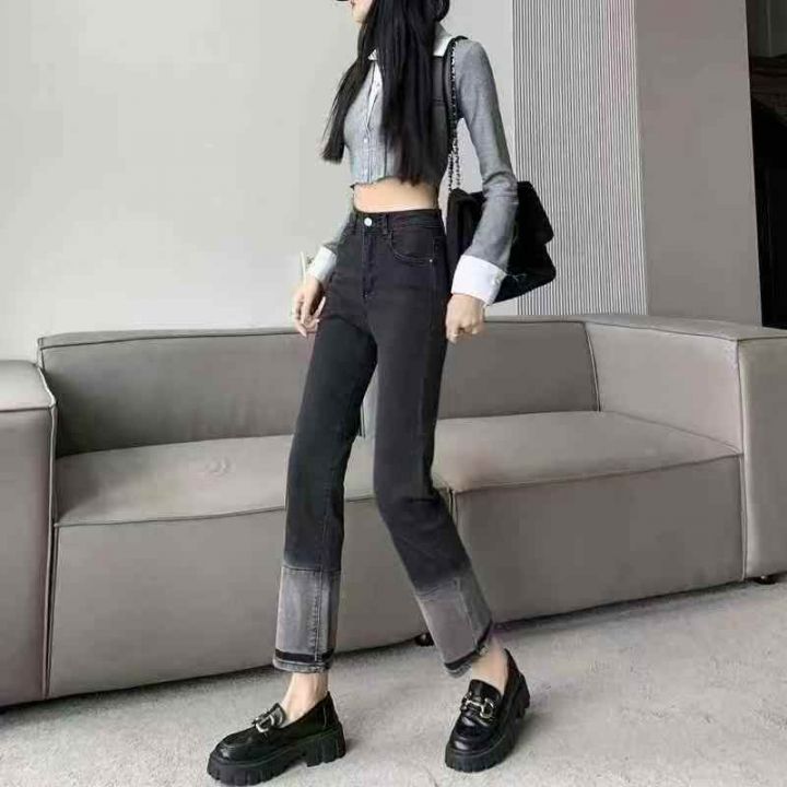 9.9清251件加绒直筒牛仔裤女高腰牛仔长裤小个子显瘦显高烟管法棍裤子 码数...