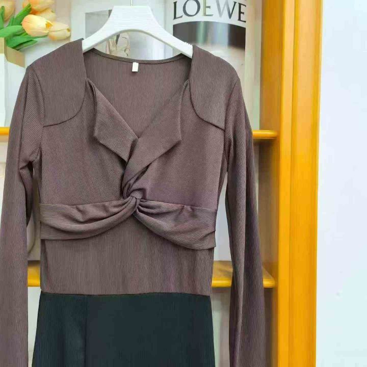 ① 高级感交叉扭结翻领长袖鱼尾连衣长裙!高弹力,独立包装,码数S-XL,数量700件左右,全清8.8元