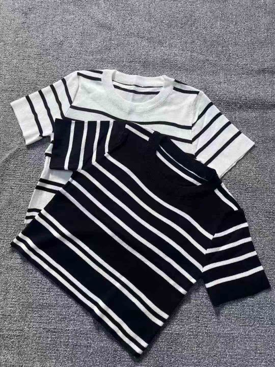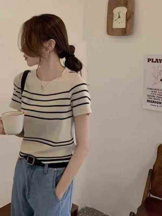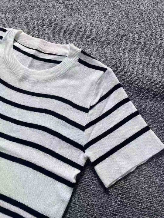 450件靓女条纹针织短袖T恤,夏季薄款,冰丝面料,穿着...