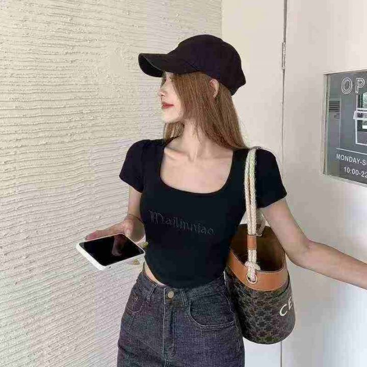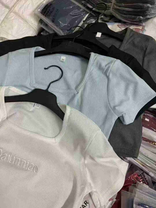 1600件\'辣妹U领垂感刺绣设计T恤,码数M-2XL,(高弹)独立包装,货品新净,品质️分货➕1,货号001#30